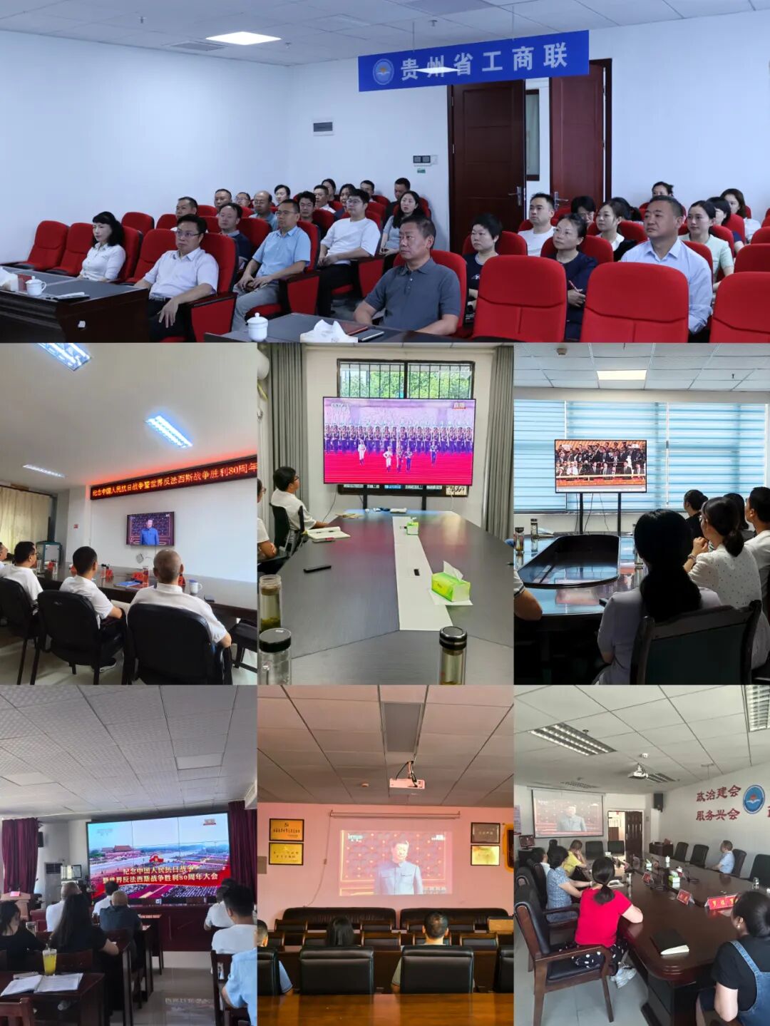 大家纷纷表示,全省工商联系统将深入学习习近平总书记在纪念中国人民抗日战争暨世界反法西斯战争胜利80周年大会上的重要讲话精神,立足工商联职能职责,进一步教育引导广大民营经济人士把握时代大势、坚定理想信念,切实增强“四个意识”、坚定“四个自信”、衷心拥护“两个确立”、忠诚践行“两个维护”,持续深入学习贯彻习近平总书记在民营企业座谈会和在贵州考察时的重要讲话精神,认真落实党的二十届三中全会精神,以及全省大抓产业大抓项目大抓招商推进会、全省现代化产业体系建设推进会部署要求,紧扣省委省政府围绕“四新”主攻“四化”主战略和“四区一高地”主定位,进一步加强直属商(协)会及广大会员企业党建工作;深入开展“万企兴万村”行动,积极参与产业大招商;深入贯彻落实《民营经济促进法》,做好法律服务“进企业、进商会、进机关”与“法治体检”工作;用好“企业之家”平台,大力推进“进企业、解难题、送政策、促发展”活动,切实为民营企业办实事、解难题,用实际行动进一步助力优化营商环境,为在中国式现代化进程中展现贵州新风采而努力奋斗。