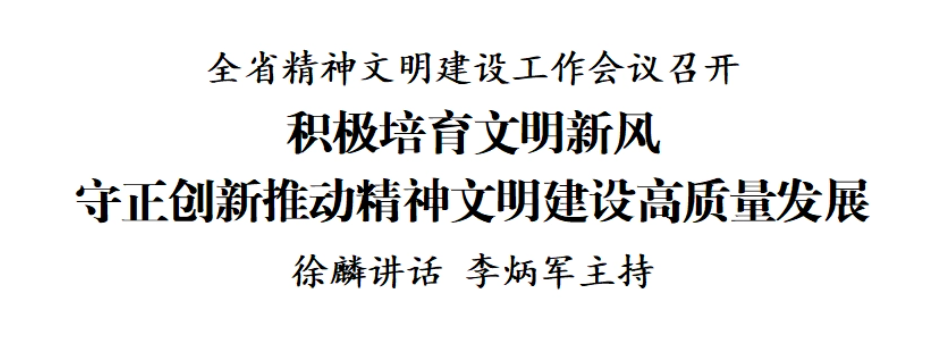 徐麟强调,要抓好学习宣传贯彻习近平新时代中国特色社会主义思想这个首要政治任务,坚持不懈用党的创新理论培根铸魂、凝聚人心。要注重以文化人、以文育人,丰富文体活动、打造文艺精品、挖掘用好特色文化资源、完善公共文化服务,持续丰富人民精神世界,筑牢向上向善向美的精神底座。要贯通协同推进文明培育、文明实践、文明创建,强化群众参与主体作用,聚焦婚嫁新风、殡葬新风、节俭新风等重点深化移风易俗,丰富内容、创新形式推动文明实践有形有效覆盖扩面提质,提升文明城市、文明村镇、文明单位、文明家庭和文明校园创建质效,绵绵用力养成文明习惯、形成文明风尚。要把加强党的领导贯穿精神文明建设各方面全过程,突出党员干部带头,发挥先进典型示范作用,广泛深入动员群众,营造全社会人人参与、人人践行的浓厚氛围。